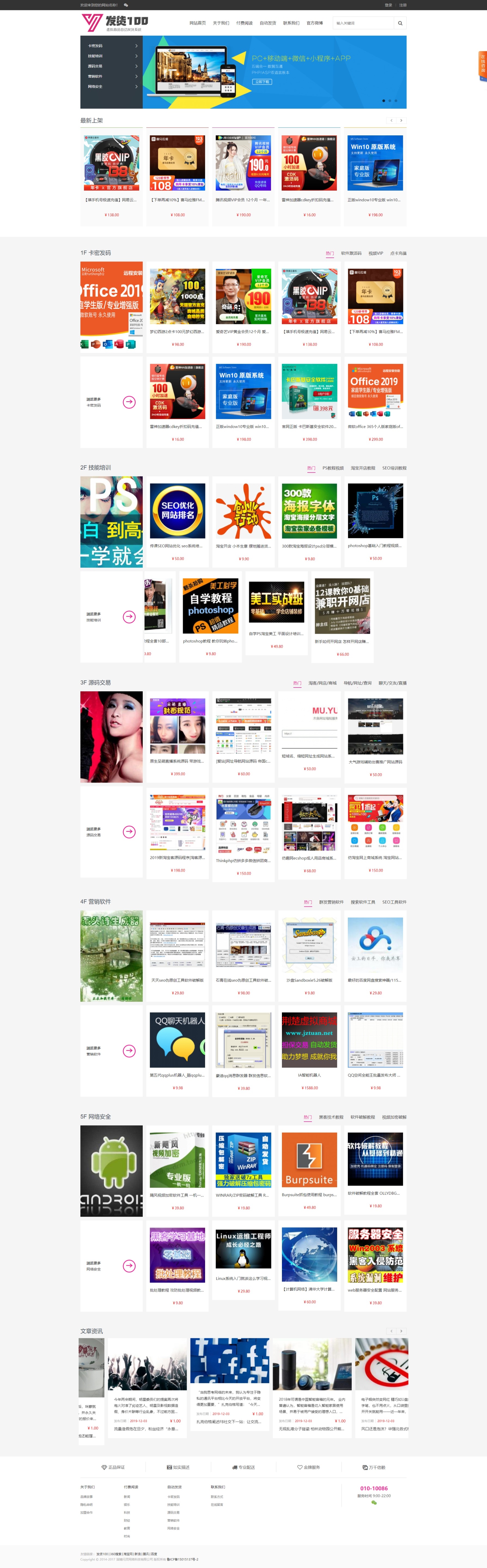 发货100-虚拟商品自动发货系统是一套功能强大的虚拟商品自动发货系统/文章付费阅读系统,无需人工值守,客户在线购买即可自动完成交易。支持缺货提醒/快捷登录/回收站/免登录购买等多种功能。