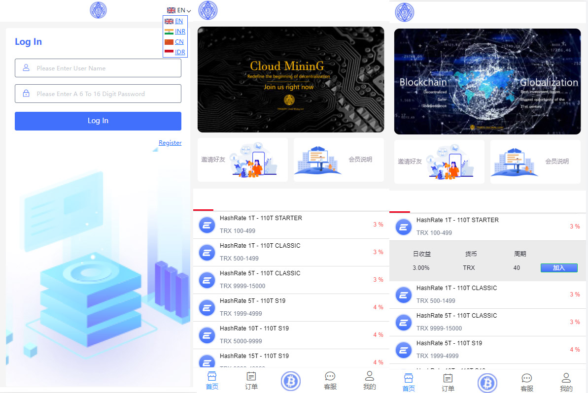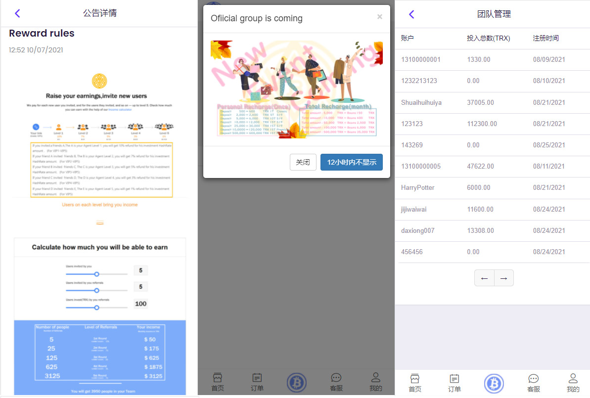 一款ThinkCMF开发的TRX矿机源码,完美运营级别,4国语言、usdt充值