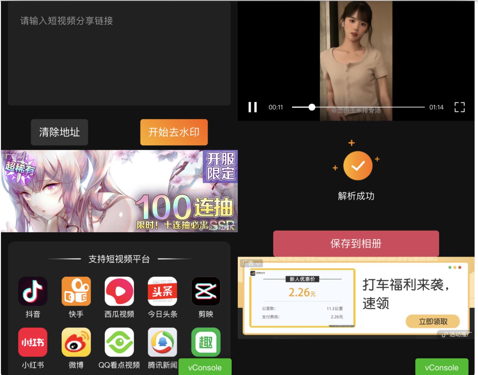 支持全网多家平台的短视频去水印