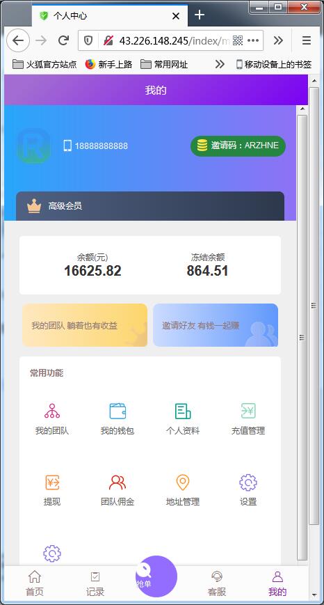 前台测试账号:18888888888