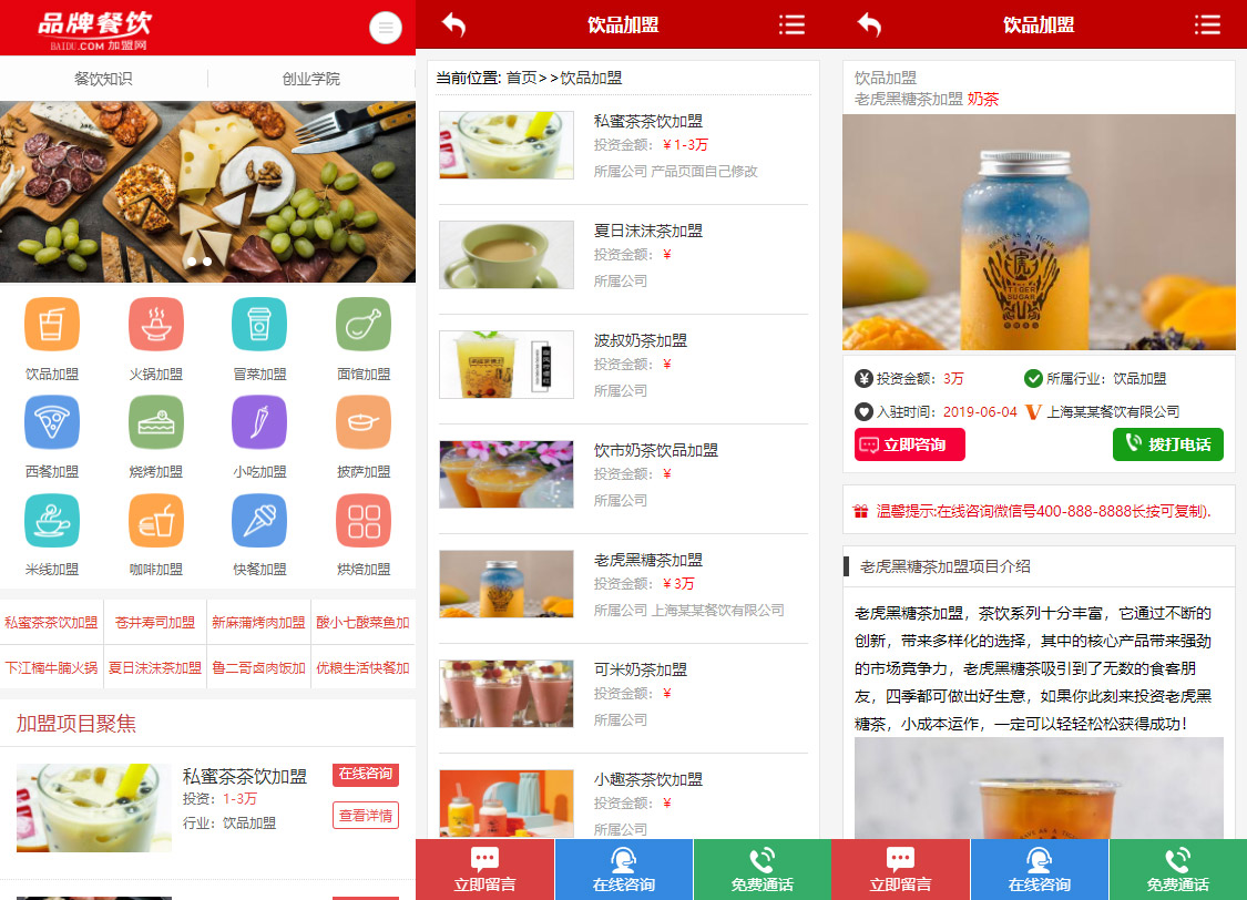 PbootCMS内核开发的网站模板,该模板适用于招商加盟网站、美食小吃加盟网站等企业,当然其他行业也可以做,只需要把文字图片换成其他行业的即可;