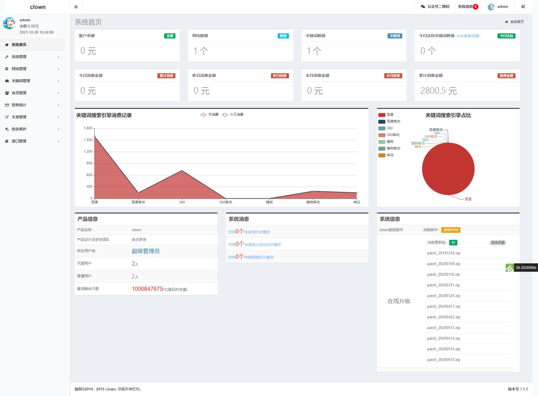 利润统计,各个搜索引擎关键词的达标数量,最近7日达标数量,折线图和柱状图展示,方便你查看!!!