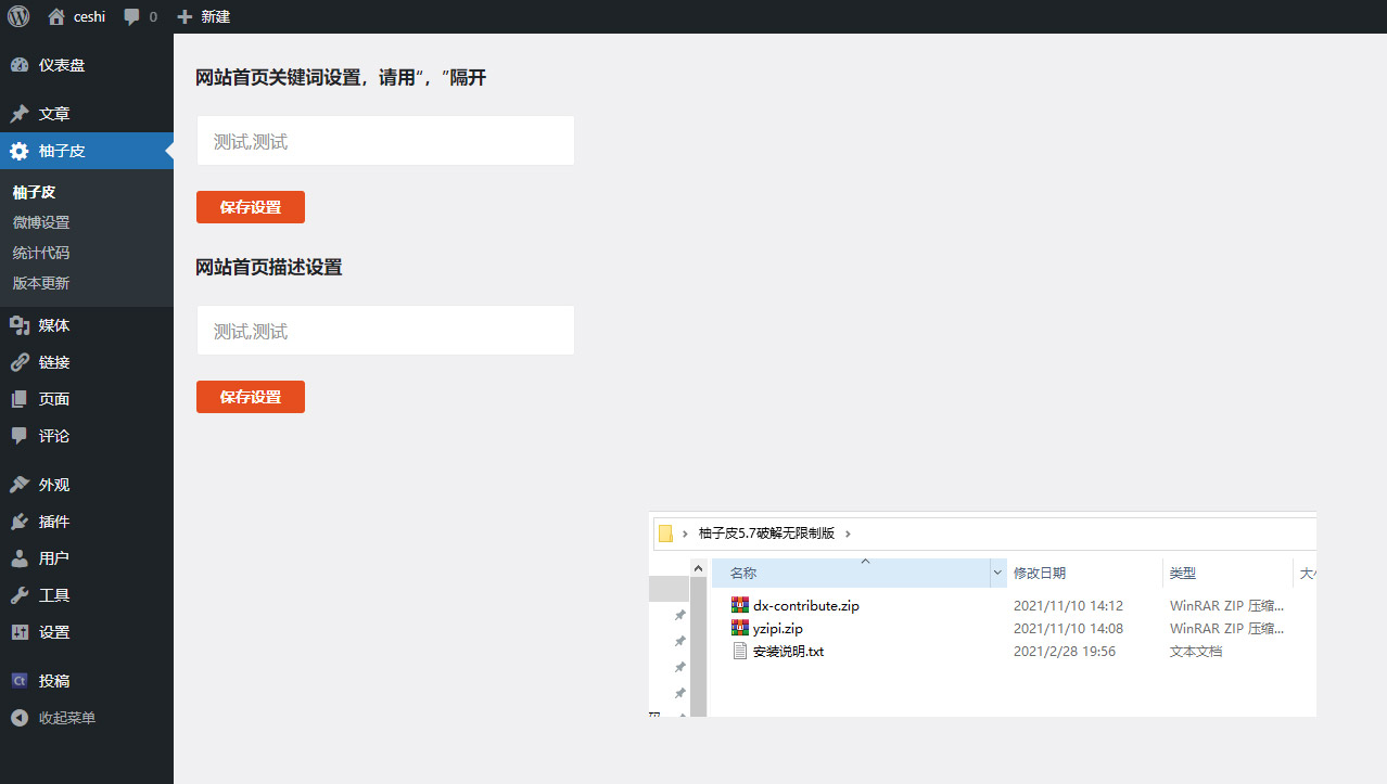柚子皮主题安装教程: